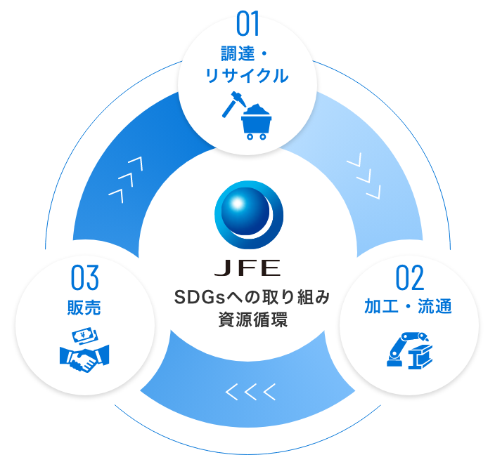 世界有数の鉄鋼メーカーであるJFEスチールをはじめとするJFEグループとの連携を通し、原材料の調達~加工・流通まで一貫したサプライチェーンをマネジメントしています。