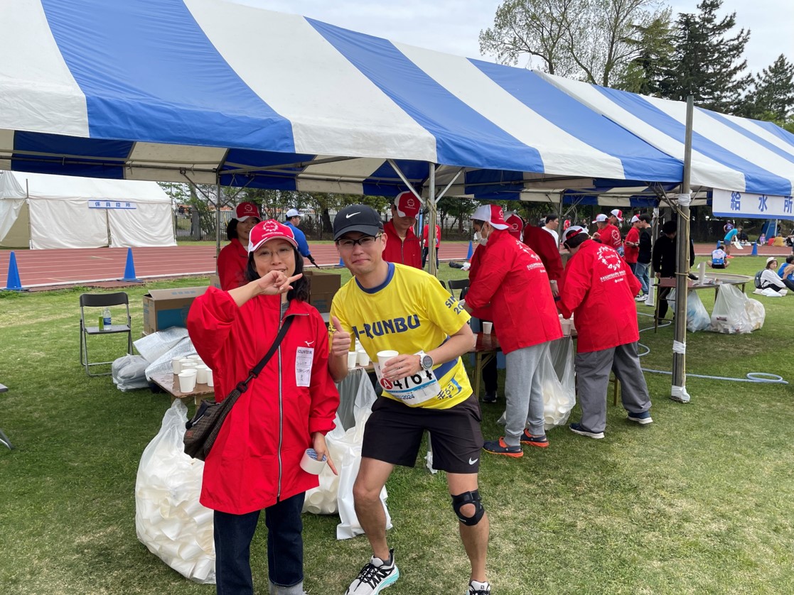 昨年に引き続き、ゴールエリアの給水所の運営をメインに、会場案内やランナーの記念撮影サポートなど様々なボランティアに携わりました。当日は、快晴となり気温が急上昇した影響もあり、給水所は水分を求める多くのランナーで賑わいました。多くのランナーから感謝のお言葉をいただき、また観客や他企業のボランティア参加者との触れ合いを通じ、ボランティア活動の楽しさと充実感を得る絶好の機会となりました。