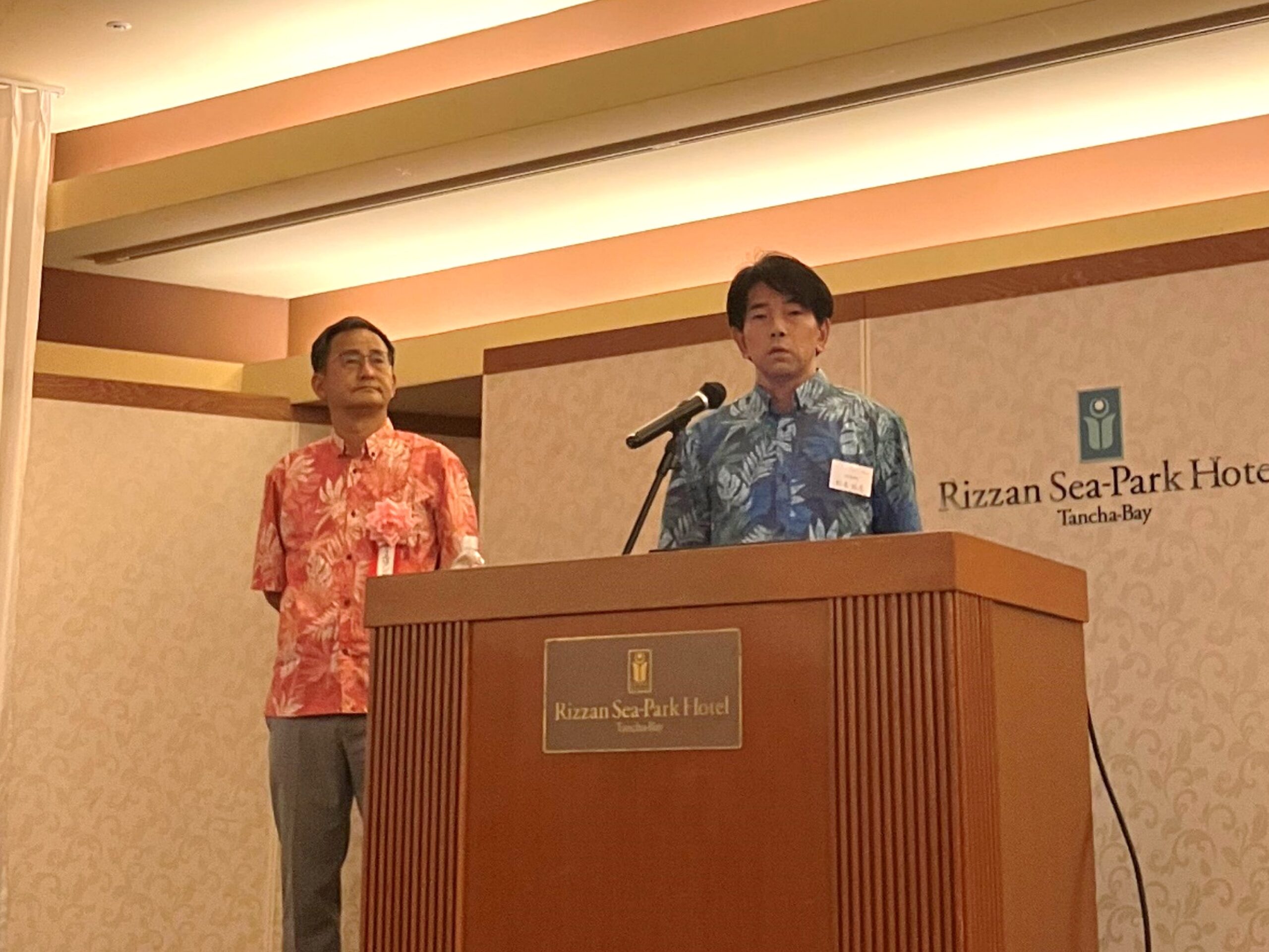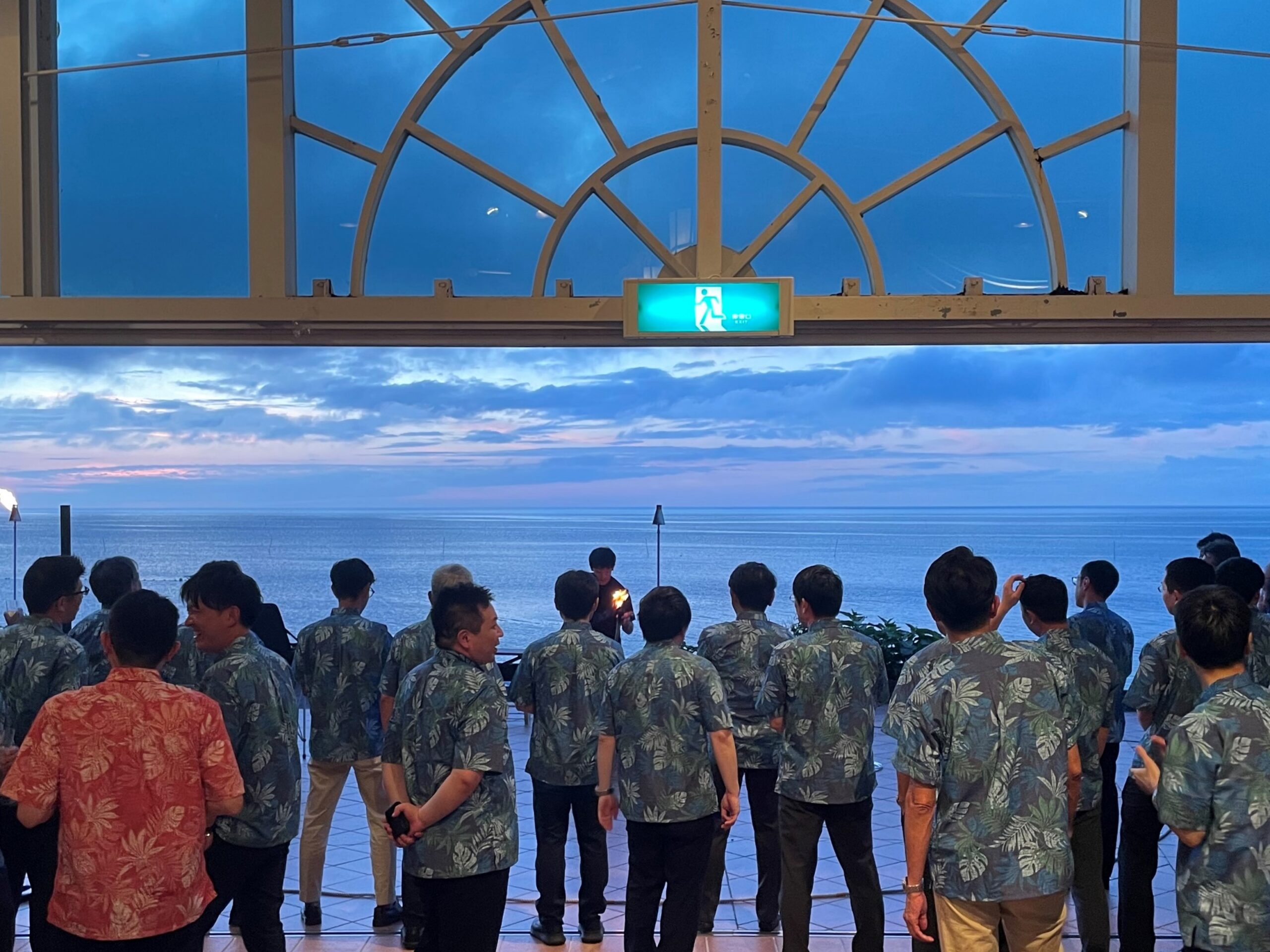 総会後はオーシャンビューの会場から、海に沈む夕日を見ながら懇親会を行い、沖縄での開催を喜び合いました。