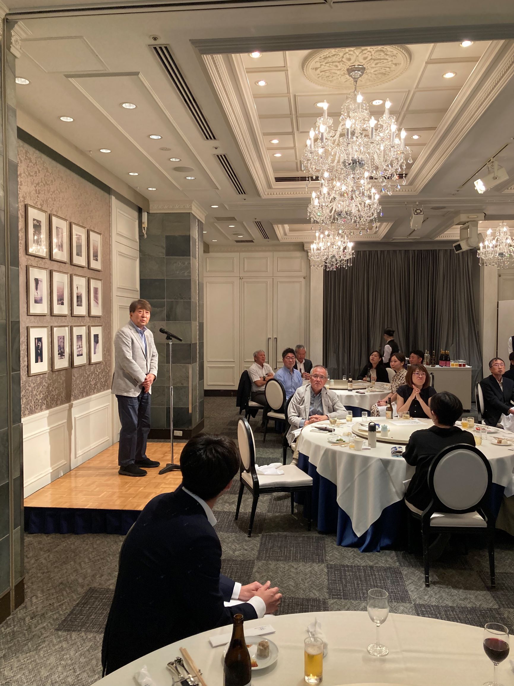 当社グループ会社のケー・アンド・アイ特殊管販売(以下、K&I)は、会社創立25周年を記念して、ホテルモントレ銀座で「K&I 創立25周年記念パーティー」を開催しました。本イベントには、初代社長の小川秀彦さんをはじめ、歴代の社長5名全員が参加し、OBの方々と社員を含む総勢34名が集まりました。