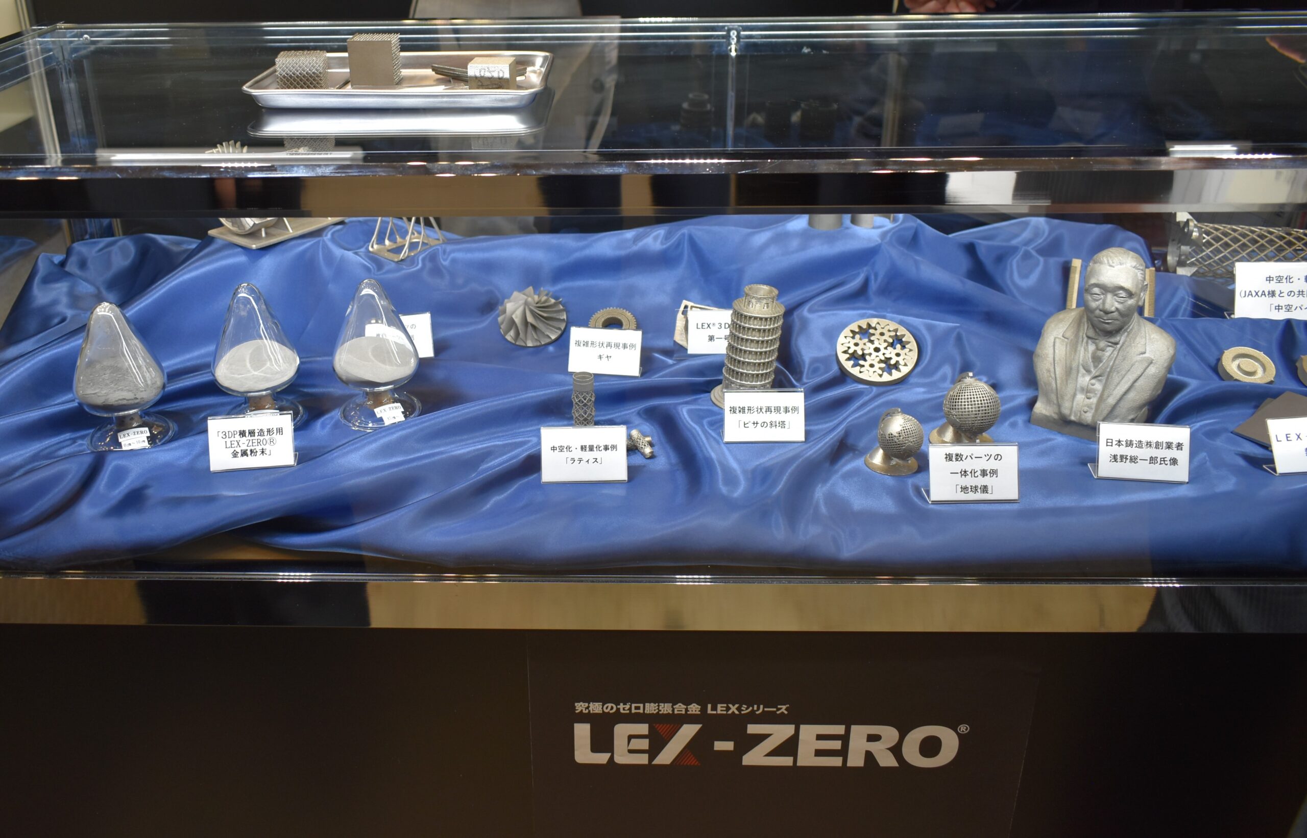 Jエレは、日本鋳造の低熱膨張合金材料「LEXⓇ」について、これまで素材の販売を行ってきましたが、お客様のニーズに対応すべく、素材販売に加えて加工や造形・熱処理・表面処理までを一貫して対応できる体制を構築し、新設の高機能性材料開発室が「LEXⓇ」の総合窓口としてワンストップサービスの提供を開始しています。展示会では、LEXⓇを使用した加工品をブースに展示するとともに、細かな加工が必要な製品への対応や3Dプリンターによる3D積層造形などを紹介しました。