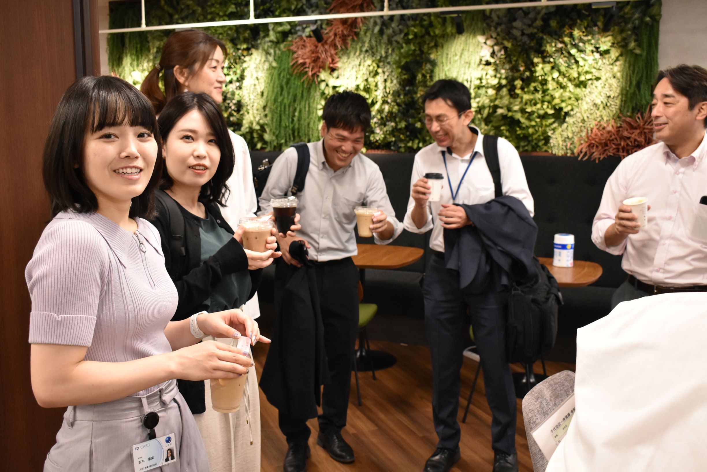 清掃後は、新大町ビル9階のグリーンカフェでコーヒーやジュースを楽しみながら参加者同士で交流を深めました。