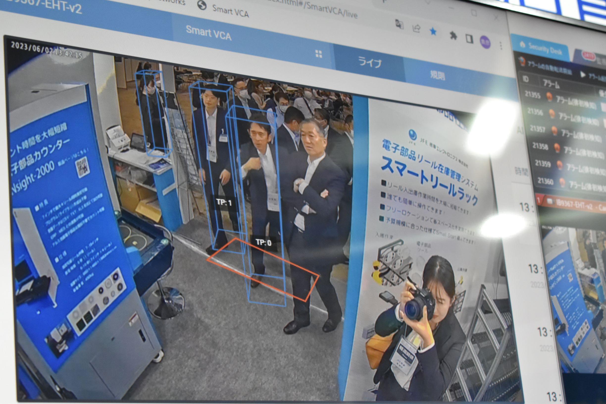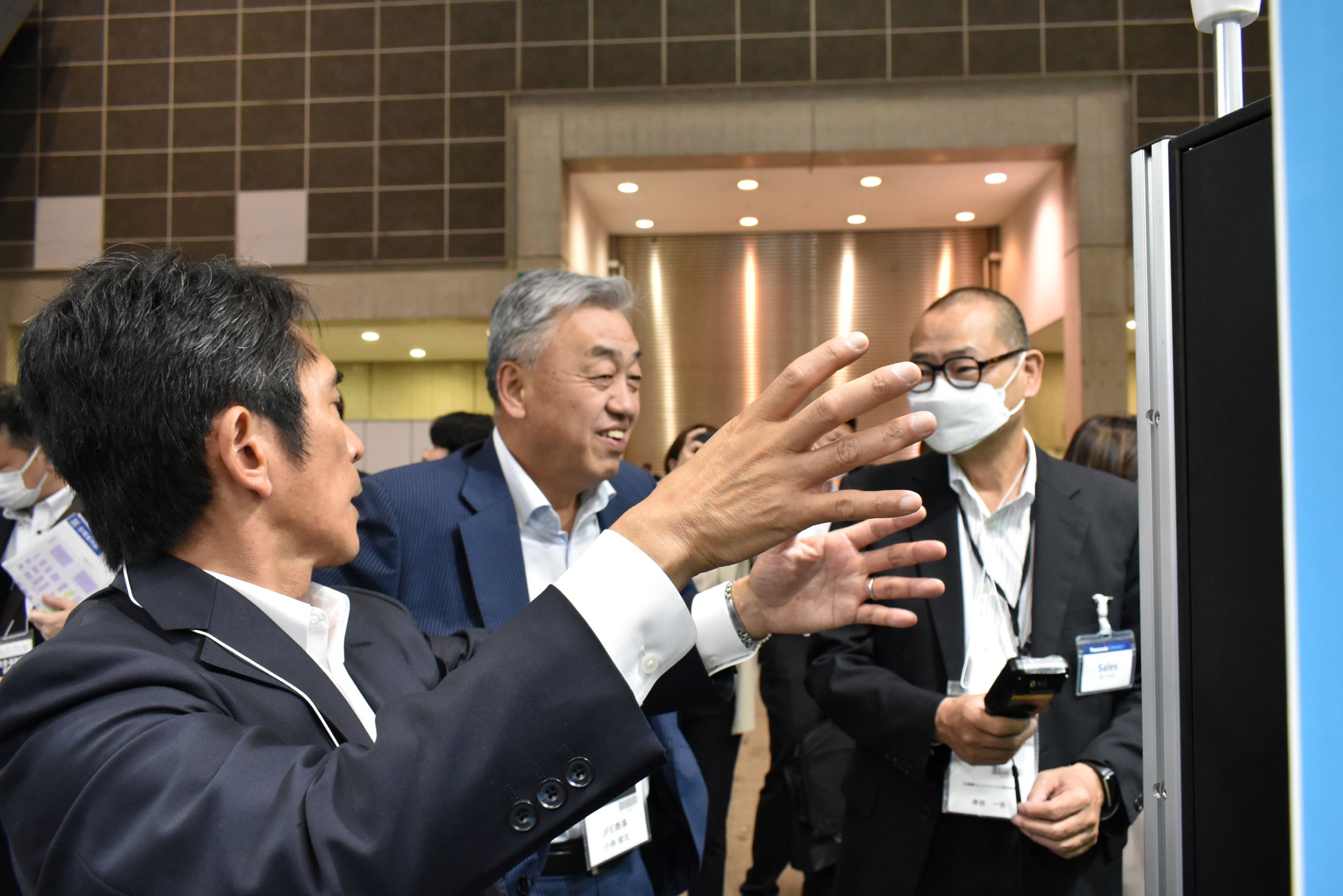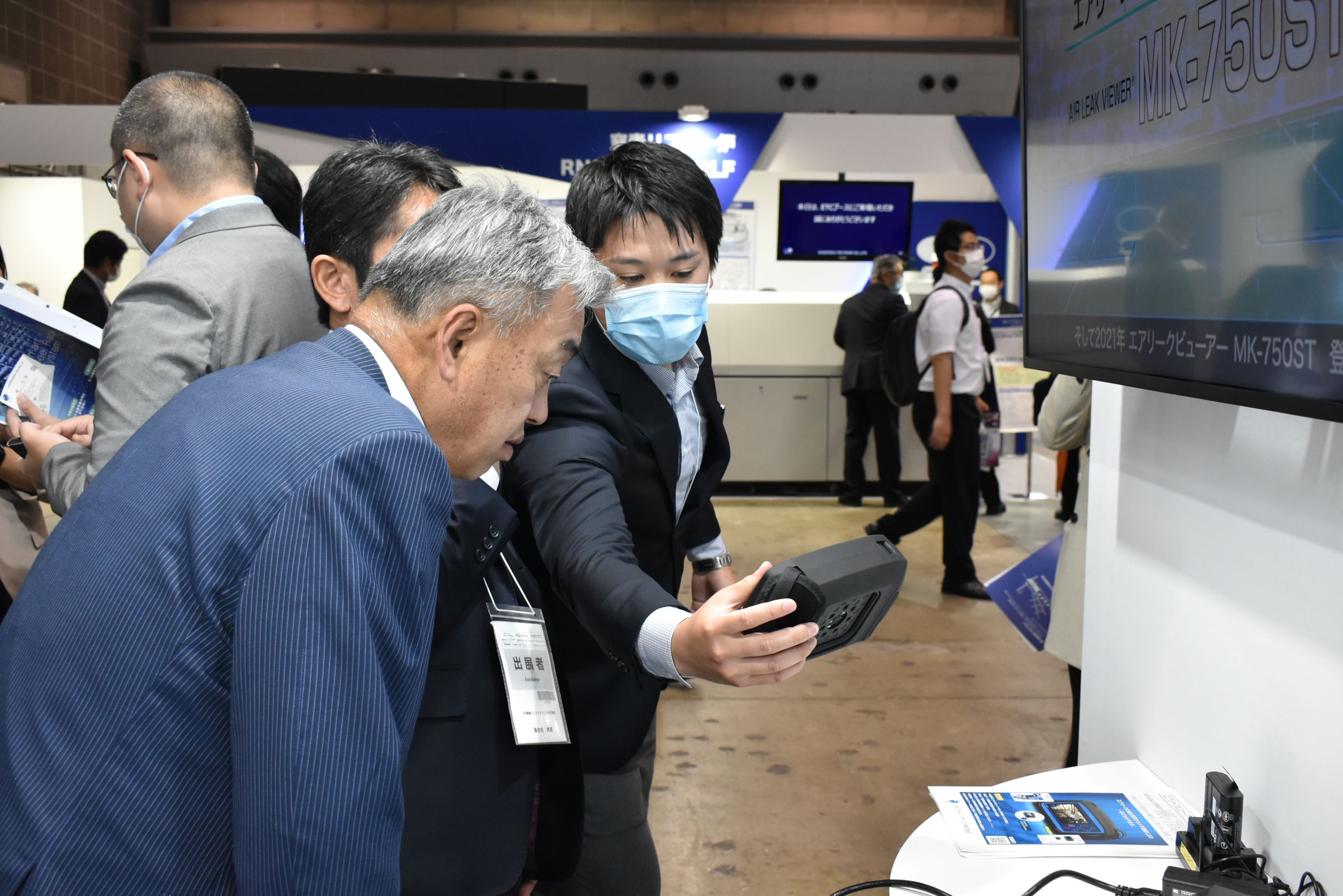 ブースでは、スマートリールラックやX線電子部品カウンター等の実装関連製品を展示し、 実装工程におけるトータルソリューションと映像による現場の課題解決サービスをアピールしました。最終日には、当社の小林社長、津村副社長も視察に訪れ、担当者からの説明を受けていました。