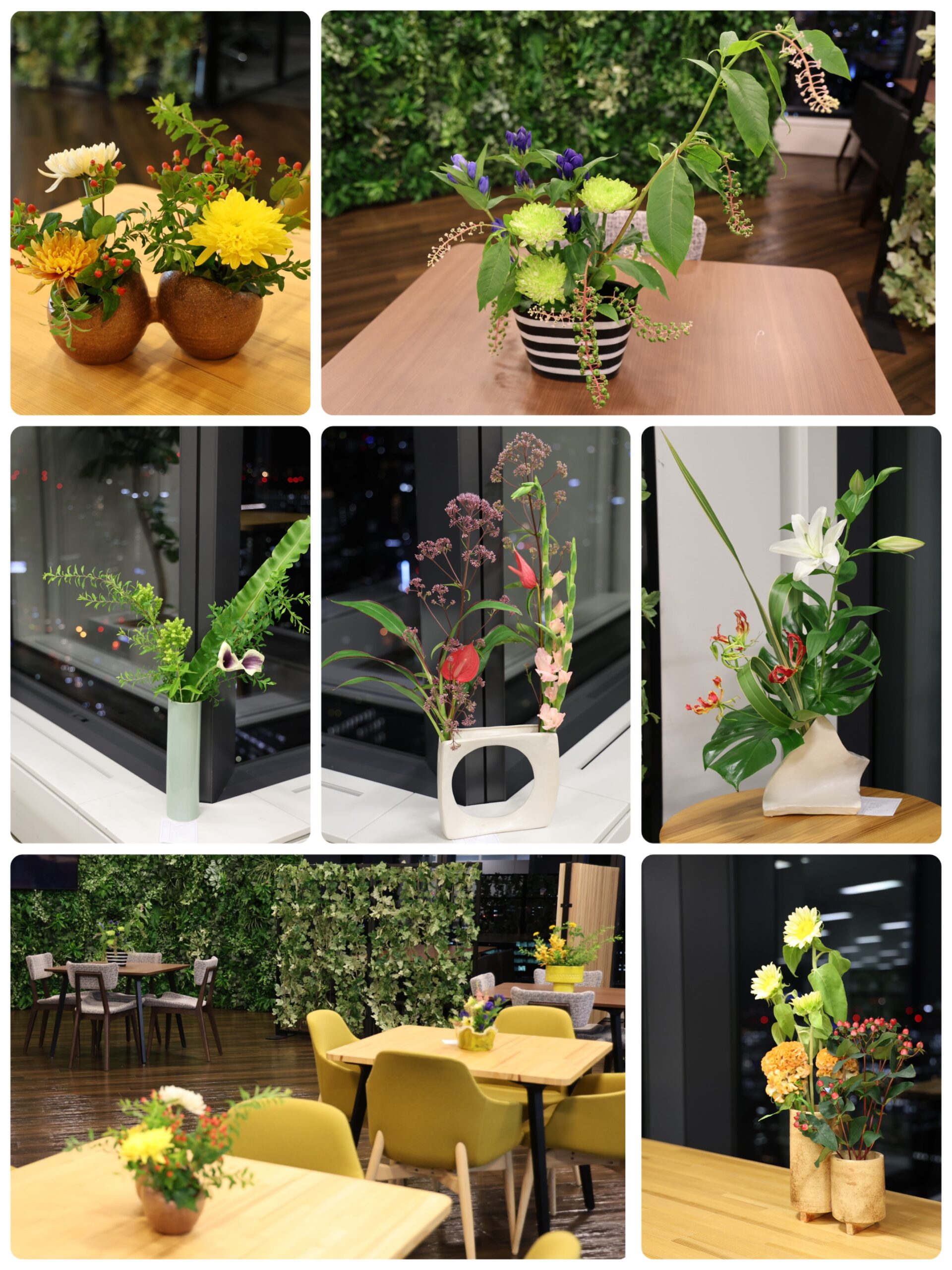 開催後、作品は本社のリフレッシュコーナーやラウンジに展示され、「オフィスにお花があると華やかで気分が上がるね」などの会話が生まれ、社員同士のコミュニケーションの活性化にも繋がりました。