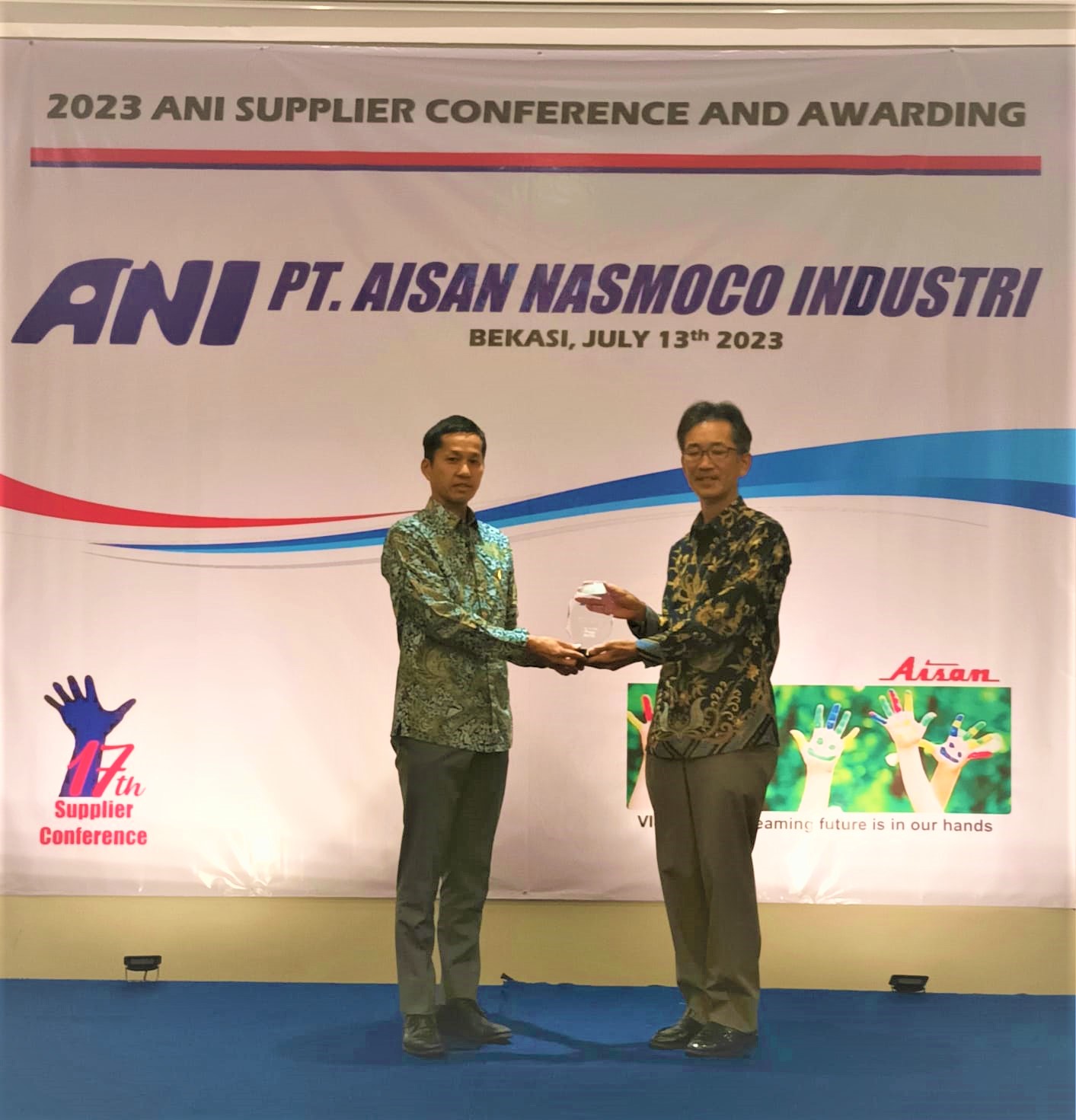PT.JFE Shoji Steel Indonesia(以下、JSSI)は、主要販売顧客の1社である自動車部品メーカーのPT. AISAN NASMOCO INDUSTRI(以下、AISAN)よりBest Quality賞を受賞しました。2019年のBest Quality賞、2020年のBest Delivery賞に続き3回目の受賞となった今回は、品質に関するクレームの発生件数0件が評価されました。7月13日に行われた授与式では、AISANより「毎年素晴らしい品質の製品を供給頂き、ありがとうございます」とコメントを頂きました。