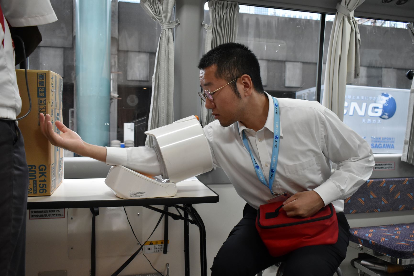 この活動は、病気の治療や手術などで輸血を必要としている方の命を救うために、社員が身近に行える社会貢献活動として、2014年より年2回実施しています。当日は40人が参加し、血圧測定・問診、ヘモグロビン濃度・血液型事前検査を行った後に献血を実施しました。