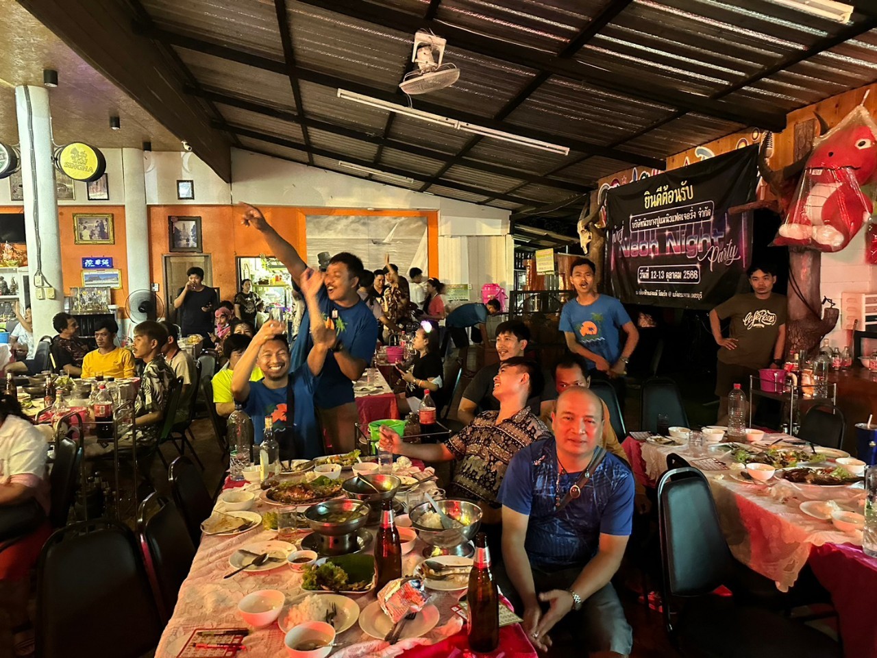 10月12~13日、NEW BANGPOO MANUFACTURING CO., LTD.(NEW BEC)は社員旅行を実施し、92名の社員が参加しました。12日の朝、一同は今回の旅行先である「ペッチャブリー県ケンクラチャーン市」に向けて出発し、日中はタムカオヨイというお寺の観光や川でのラフティングを楽しみました。夜のパーティーでは、“蛍光色”をテーマにファッションコンテストを実施。その後はビンゴゲームやダンスで盛り上がりました。2日目はケンクラチャーン国立公園を観光し、大自然を満喫しました。