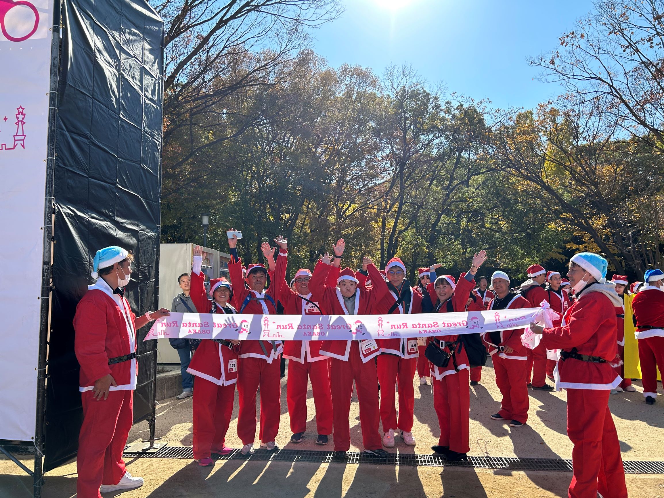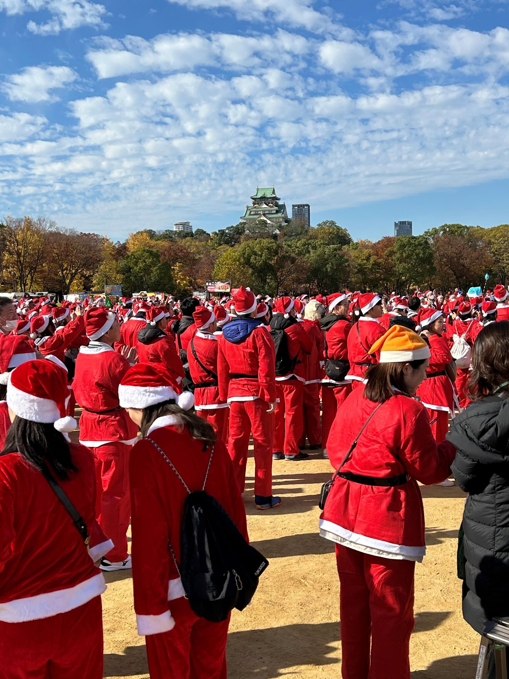11月26日、大阪支社の有志社員5人とそのご家族1人の計6人が大阪城公園で開催された「大阪グレートサンタラン2023」に参加しました。本イベントは、サンタクロース姿で、非日常を楽しみながらランニングやウォーキングし、参加費用でプレゼントを購入し病気と闘う子どもたちにクリスマスプレゼントとして寄付するチャリティーイベントです。発祥国は不明ですが、イギリスでは毎年100か所以上で開催されており、大阪グレートサンタランはイギリスのエジンバラで開催されているものがモデルとなっています。
