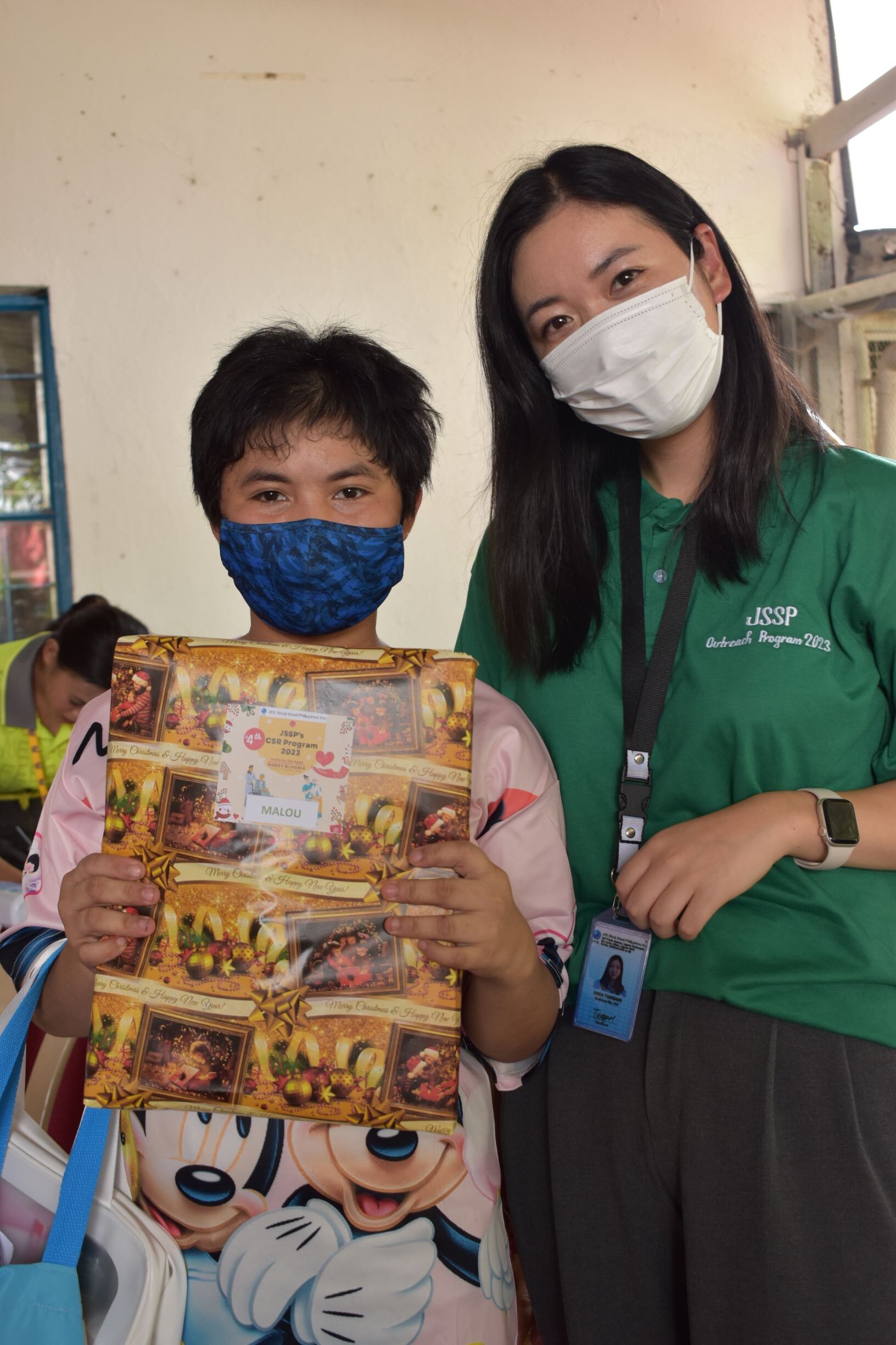 JSSPの社員は自分たちの給与の一部や、パンやお米などの食料品、衣類等を同施設に寄付しました。また、別途集めた寄付金で購入した、帽子や寝具、タオル、衛生キットなどを詰めたオリジナルギフトバックを入居者の方々に、クリスマスプレゼントとして贈りました。その後は一緒にゲームで遊び、歌や会話を楽しみ、食事も共にして、とても楽しい時間を過ごしました。