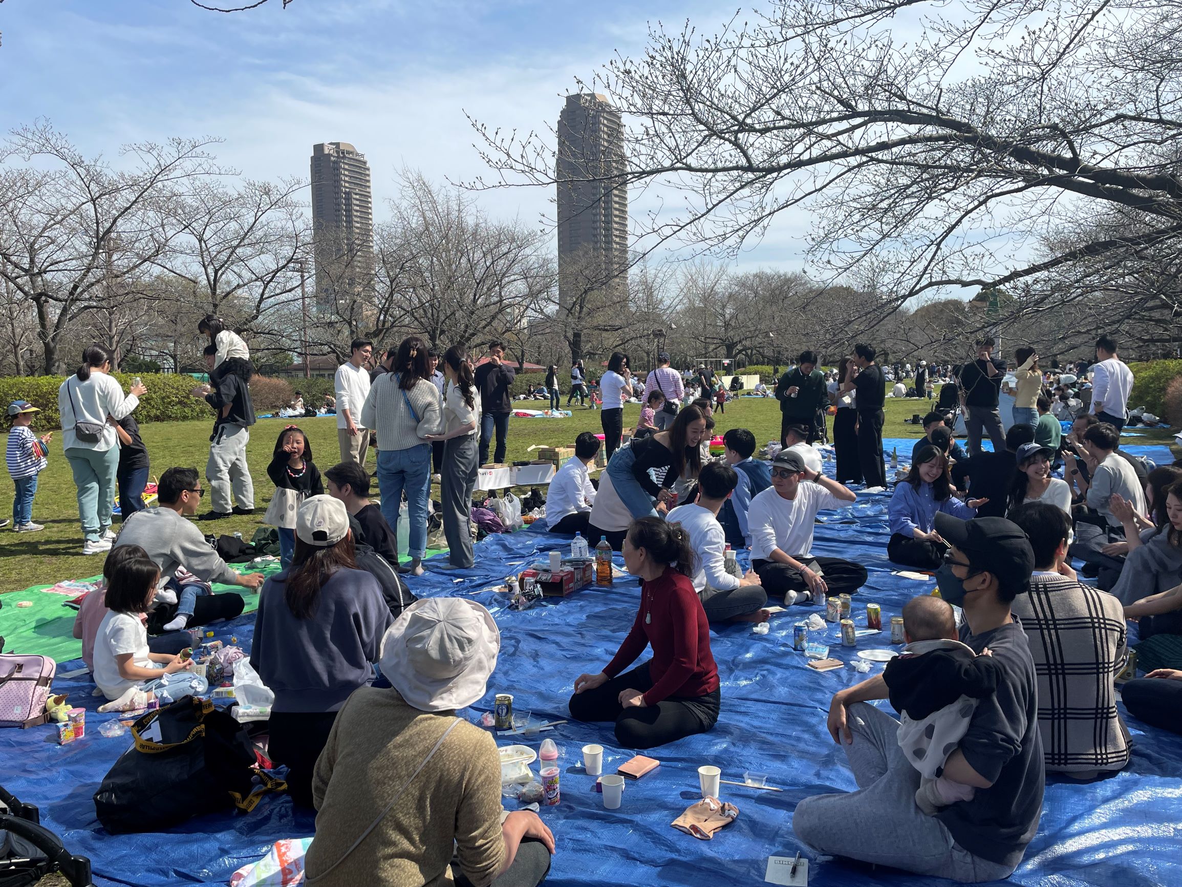 JFE商事労働組合東京支部は、3月30日に猿江恩賜公園でお花見イベントを開催し、社員とその家族約70人が集まりました。当日は最高気温22℃と、3月とは思えないほどの暖かい陽気に恵まれました。